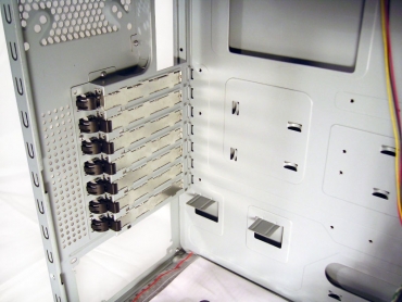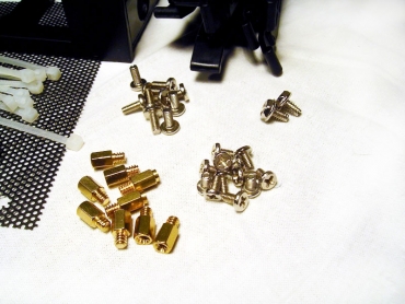 Beveik visus įrenginius korpuse galima sumontuoti nesinaudojant papildomais įrankiais. Kaip jau minėjau, HDD yra montuojami specialiomis "slidėmis". PCI, AGP ir kitos plokštės, jungiamos į motininės plokštės lizdus, yra fiksuojamos specialiais plastikiniais užspaustukais. Gaila, bet jie pagaminti iš per silpnos plastmasės, todėl yra gan trapūs. Elgiantis neatsargia jie gali lūžti. Man taip nutiko montuojant vaizdo plokštę. Taip pat, jie prispaudžia plokštes ne taip jau ir gerai. Prispaudimas puikiai tinka tinklo plokštėm ar papildomų USB jungčių plokštelei, bet netinku sunkiasvorei vaizdo plokštei. Plokštė kliba ir nesilaiko stabiliai.