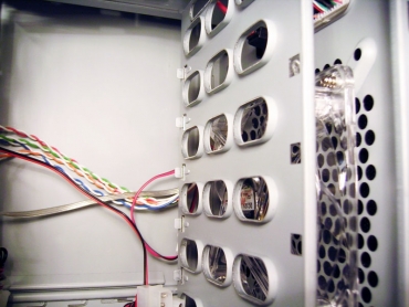 Motininės plokštės tvirtinimo sienelėje, tarp motininės plokštės ir 5.25" ir 3.25" įrenginių montavimo rėmų ir galinėje sienelės pusėje yra įmontuotos specialios laidų tvirtinimo auselės. Prie jų labai patogu priveržti ATX maitinimo kabelius komplekte pridėtais sutraukiamais tvirtinimo dirželiais.