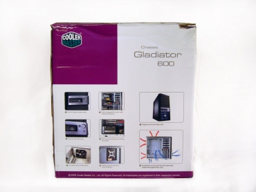Gladiator 600 dėžės dizainas yra įprastas visiems Cooler Master gaminiams. Daug baltos spalvos ir gaminio nuotraukų, atspindinčių pagrindines korpuso savybes. Galiu užtikrinti, kad dėžės įlenkimų ir įplyšimų viršuje kompanijos dizaineriai tikrai nenumatė. Tai jau lietuvių darbas. Šaunu, kad dėžė viduje korpusas yra tikrai ir saugiai supakuotas ir nė kiek nenukentėjo transportavimo metu.