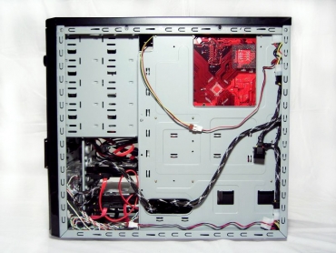 Gladiator 600 vidus nėra nudažytas. Juodos tik plastikinės montavimo detalės ir ventiliatorius korpuso viršuje. Motininės plokštės tvirtinimo sienelėje yra ertmė "back plate" tvirtinimui. Tai tikrai labai patogu, nes naudojant tokį korpusą, keičiant CPU aušintuvą, neteks nuiminėti motininės plokštės.