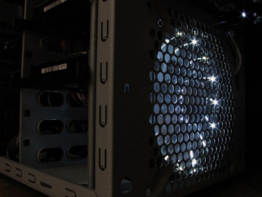 Dar viena Enermax įdiegta naujovė yra ventiliatoriaus apšvietimo sistema. Visa elektronika yra sumontuota ant lanksčios spausdintinės plokštės ventiliatoriaus korpuso viduje, tarp korpuso vidinės sienelės ir ventiliatoriaus menčių. Čia sumontuoti 15 ypač ryškūs baltos spalvos šviesos diodai, kuriuos per tranzistorinius raktus valdo mikrovaldiklis PIC16F630. Plokštėje taip pat sumontuotas 5V stabilizatorius mikrovaldiklio maitinimui bei atitinkami rezistoriai šviesos diodų srovės ribojimui. Įdomu tai, kad gamintojas plokštėje paliko mikrovaldiklio programavimo aikšteles, kas nejučia perša mintį, kad mikrovaldiklis nėra užrakintas ir yra galimybė pačiam susikurti norimą individualų apšvietimo derinį. Aišku tam tereikia tik kibirėlio žinių ir PIC programatoriaus.