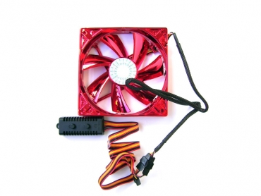Komplektuojamas reguliatorius prie ventiliatoriaus yra jungiamas netrumpu daugiagysliu plokščiu laidu, suprojektuotu taip, kad reguliatorių būtų galima sumontuoti norimoje korpuso vietoje ar jo išorėje. Sakyčiau, sprendimas yra gan vykęs, nes labai palengvina apšvietimo režimo nustatymą ir suteikia ventiliatoriaus greičio reguliavimo galimybę nelendant į korpuso vidų.