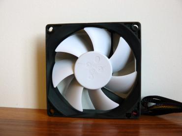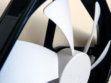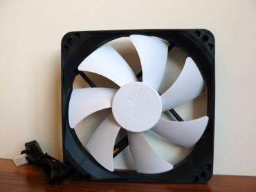 Tai didžiausiais Silent Series ventiliatorius. Jo galia 2.4 W, apsukos 600 rpm, todėl sukeliamas triukšmo lygis - tik 9 dBA. Dėja, nė viename iš mano turimų korpusų 140 mm ventiliatorius nemontuojamas, todėl jo foto korpuse, veikiančiame rėžime, nepateiksiu.