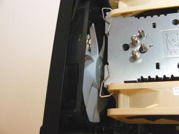 Norėdamas išmėgintį šį ventiliatorių, nutariau sumontuoti jį ant Noctua NH-U12P SE2 radiatoriaus, tačiau tai pavyko tik dalinai: ventiliatoriaus rėmas pagamintas specifiškai. Ventiliatoriaus tvirtinimui guminiais elementais konstrukcijoje pagamintas uždaras "kanalas" tarp rėme esančių skylių. Šis "kanalas" neleidžia tvirtinimo rėmelį įstatyti į ventiliatoriaus tvirtinimo skylę. Toks tvirtinimas, kuris pavyko - man neatrodo itin saugus, todėl šitaip sumontuoto ventiliatoriaus nenaudojau. Paveikslėlyje trugdantis "kanalas" apibrauktas raudonai.