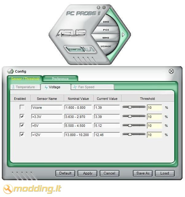 Pateikiu Nexus NX-5000 R3 maitinimo bloko įtampų dydžius, užfiksuotus PC Probe II V1.04.74 programa. Stebint šį maitinimo bloką PC Probe II V1.04.74 programa, per valandą nebuvo užfiksuotas nė vienas didesnis nei 2 % įtampos šuolis.