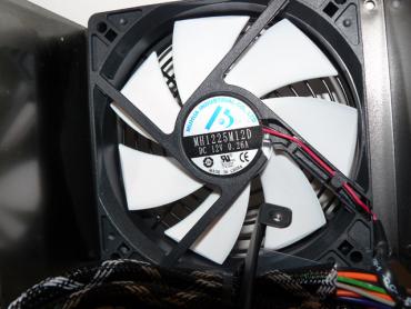 Vidinėje PSU rėmo dalyje padarytos ventiliacinės angos. Aušinimui naudojamas Muhua MH1225M12D 12V 0.26A ventiliatorius - dėja šio ventiliatoriaus charakteristikų gamintojas nenurodo. Naudojant PSU ventiliatorius veikia tyliai, be pašalinių garsų.