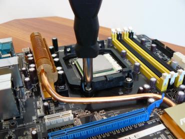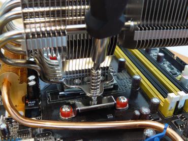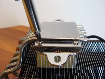 Aušintuvas prie motininės plokštės pritvirtinamas dviem ilgais varžtais, kurių įtempimą reguliuoja dvi spyruoklės. Ant radiatoriaus viršaus priklijuojamos dvi silikoninės antivibracinės juostelės. Ventiliatorius pritvirtinamas prie radiatoriaus dviejų metalinių rėmelių pagalba.