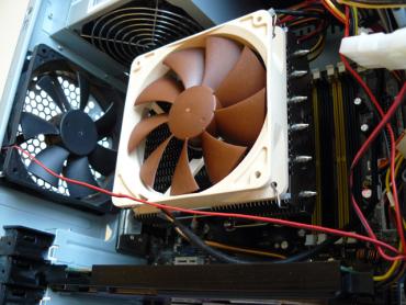 Aušintuvas sumontuotas. Pajungiame ventiliatoriaus laidą į 3pin kištuką naudodami U.L.N.A (mėlynas adapteris), L.N.A (juodas adapteris) arba be jo, priklausomai nuo to, kas jums svarbiau - ar geresnis aušinimas, ar mažesnis triukšmo lygis.