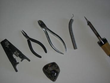 Taip pat visi reikalingi įrankiai: lituoklis, kanifolija, gnybtukai, žirklutės, gražtas, dremelis.