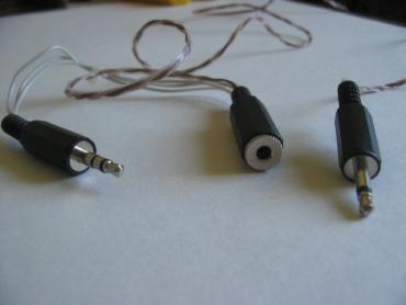 Visų pirma pradėkime nuo audio kabelio šakotuvo-prailgintuvo, juk nejungsim VU meterio tiesiai į kompą, nes negirdėsime garso :)Tam panaudosime po vieną mono kištuką ir lizdą, bei po vieną stereo kištuką ir lizdą. Galima naudoti ir kitokius kištukus bei lizdus, bet šie labiausiai tinka audio laidams savo dizainu. Prailgintuvas labai paprastas, tiesiog padarome prailgituvą su vienu mono išsišakojimu. Pateikiu schemą ir porą foto.