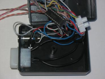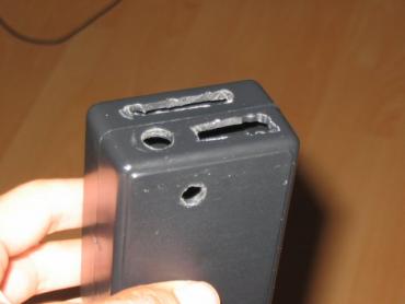 Taigi, sulitavę schemą pamatome, kad atsirado baisi laidų raizgalynė, saugumo sumetimais ją patariu izoliuoti karštais klijais. Schema yra ir ji veikia, bet juk nemesi tokią krūvą į dėžės kampą. Reikia geresnio sprendimo, taigi naudojame dėžutę. Kad būtų patogiau, geriausia išpjauti su popieriniu dremelio diskeliu skyle molex kištukui ir laidų išvedimui, panašiai kaip padariau aš, ir, aišku, įmontuoti mono audio lizdą.